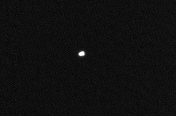 22.05.2004, 19:45:00 UT, Texp = 0.1 s, Filtr: szeroki H-alfa Jowisz (prześwietlony), Io i Europa